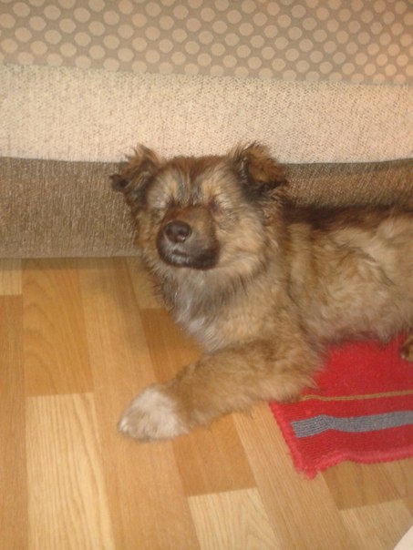 Щенка свозили в ветеринарную клинику с офтальмологу, где было сказано, что глазки отсутствую с рождения, т.е щенок никогда не видел этот мир. Как он выжил на улице- это чудо! Искали хозяев около 3 месяцев, важно было пристроить в частный дом, чтобы она спокойно могла выходить на улицу в туалет и в безопасности находиться на своей территории.