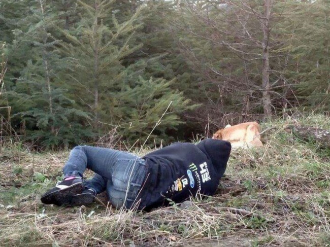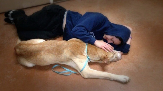 Уже через несколько минут пес лежал бок о бок с девушкой и грелся