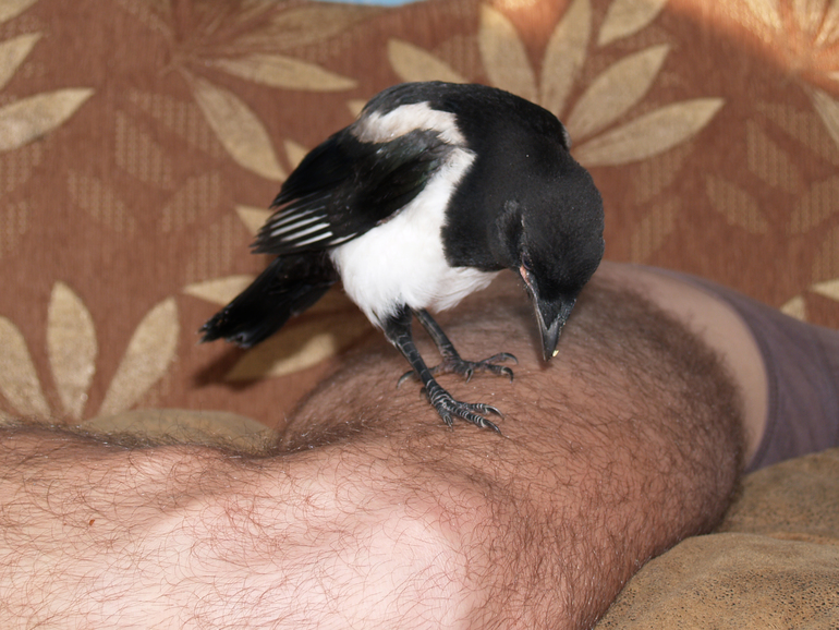 Рано утром, с 4 до 5 часов, у меня ребенок просыпается для кормления. Я тихонько встаю, чтоб никого не разбудить, но сорока тут же начинает верещать, заявляя, что проголодалась за ночь. За сорокой просыпается кошка, закрытая в другой комнате. Представьте, сижу я, кормлю малыша, рядом орет сорока, требуя жрать, в другой комнате орет кошка, тоже требуя жрать