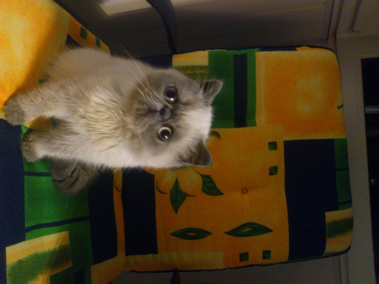 Бусёна, мелкая моя кошка. Уже 7 мес., а вес 1700. Хотела большого рыжего экзота, а получила мелочь блю поинтовую. Из за того что такая мелкая, не хочу её нести на выставку. Но за то в её маленькой головке, умные мозги. Очень умненькая и сообразительная кошечка. Не навязчивая ленивица, как и все экзоты скорей. Любимица мужа, мимо не пройдёт, что бы не погладить и не наговорить ей кучу ласковых слов)