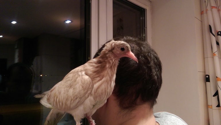 Я уже стала думать, как от него избавится, т.к. грязи от него конечно, хватает! На улицу он (или она) не улетал((( Да и маленький был все-таки. И на счастье, позвонила мне сестра, и рассказала что за городом видела дедушку с голубятней))) Муж поехал с нашим Одуванчиком, и его забрали. Дедушка был старенький, рассмотрел его со всех сторон, даже обрадовался, что мы его отдаем. Вот такой питомец был. Ручной стал в первый же день)))) Залетал на плечо по знаку, очень быстро все понимают голуби, как оказалось.