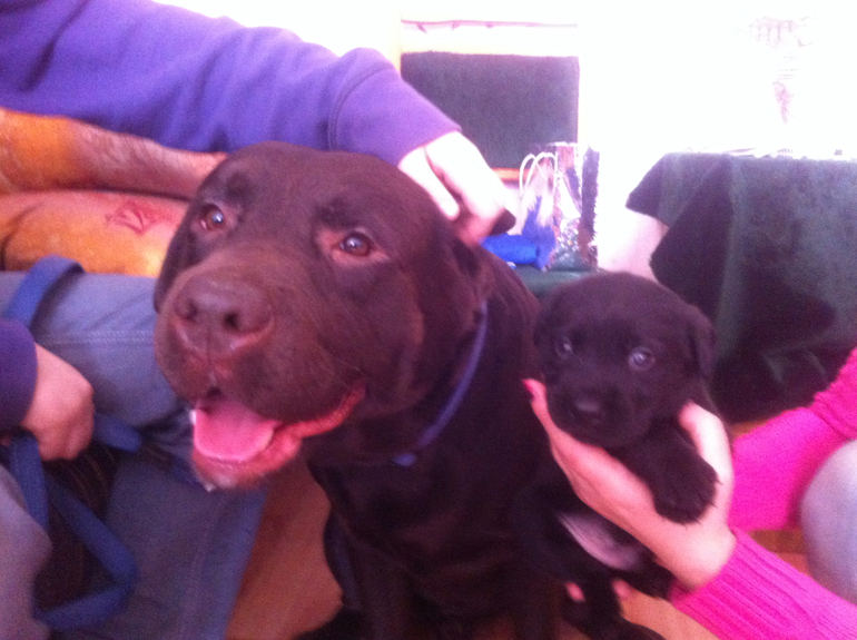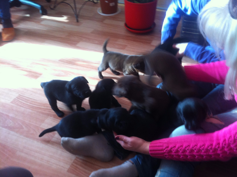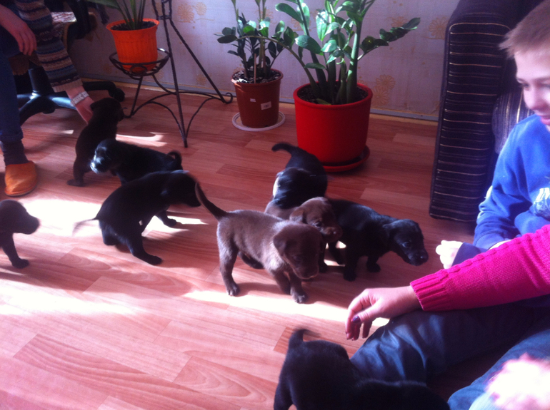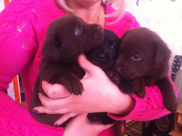 Шоколад с черным можно, с палевыми нет, иначе у детей не будет закрепленным шоколадный ген. Это лабрадорчики.