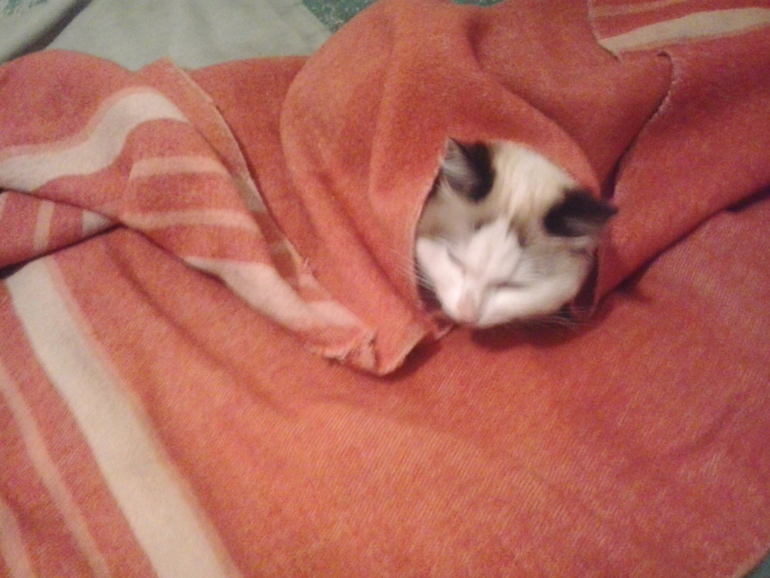 А вечерами, захожу в дом и вижу такую картину, Ася спит, она устала!