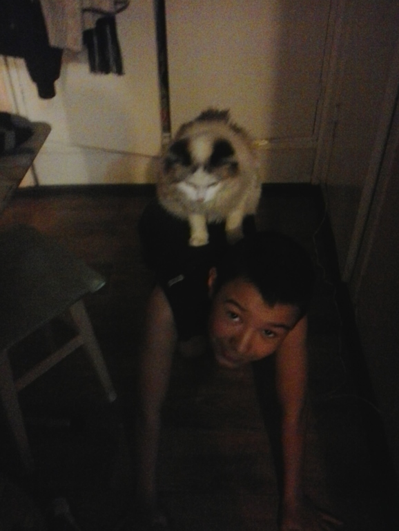 Забавные и милыеДенис искал что то на полу, а наша красавица, не долго думая, решила покататься на нем!