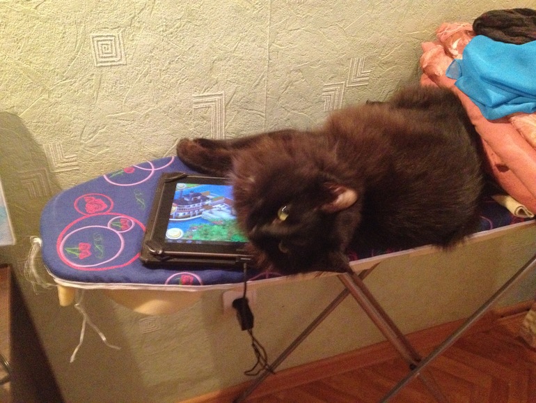 вот так же,постель когда глажу,раскладываю на гладильной доске и роликом сначала прохожусь....Из серии шерсть везде,даже во рту...