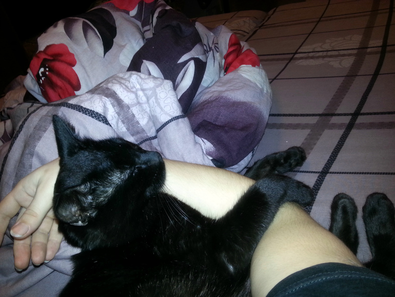 Помыла горшок,дочь не стала будить. Смотрю наш Оззи выбегает из ее комнаты. Утром стала расспрашивать дочь,не болит ли ее. Потом смотрю,на полу следы кошачьи от горшка дочкиного.