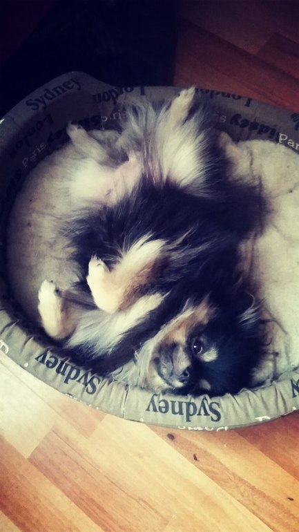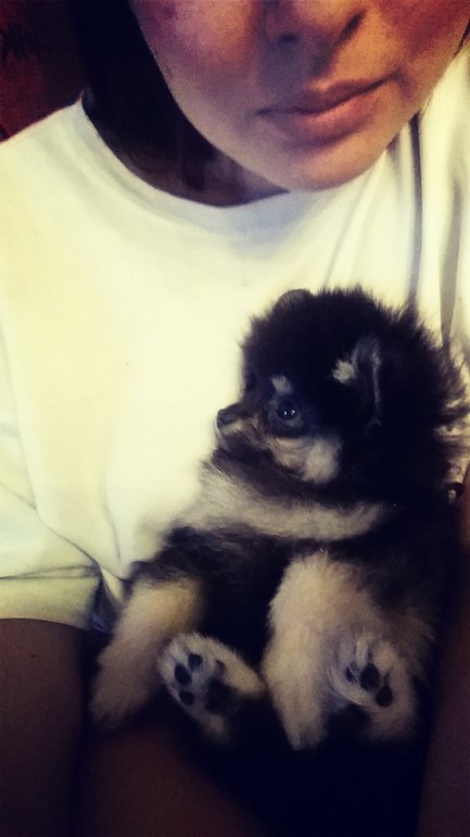 Да, это шпиц) окрас называется "черный подпалый", но обычно такой окрас (как должно быть) черный с рыжим, даже скорее с цветом йода. Но мне такой подпал не нравится( А вот увидала эту жопку маленькую и влюбилась с первого лизка в нос))))) Так и целует в нос до сих пор)))))