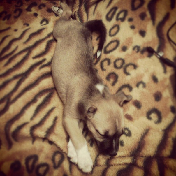 Стафф там может и пробегал, но вот шерсть слишком длинная и мордочка не типично острая, ну и в целом по костяку не тянет на стаффа.
