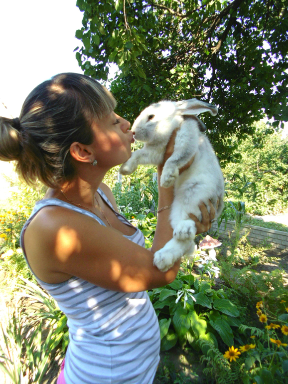Спасибо. Это обычный кролик, такие как в селах разводят. Мы ее поймали у себя на участке на пасху. У соседей сбежала беременная крольчиха и вырыла яму и родила их там. Они были очень маленькие, мы только одного смогли поймать, остальных скорее всего соседская кошка переловила, потому что возле ямы паслась. Очень жалко было. Ну а эта стала моей любимицей. Мы ее привили, и уже лечили, потому что маленькая была очень. Это она еще маленькая, будет еще больше))) А то что поймали на пасху, для меня как знак, что ли, вот теперь живет у нас).