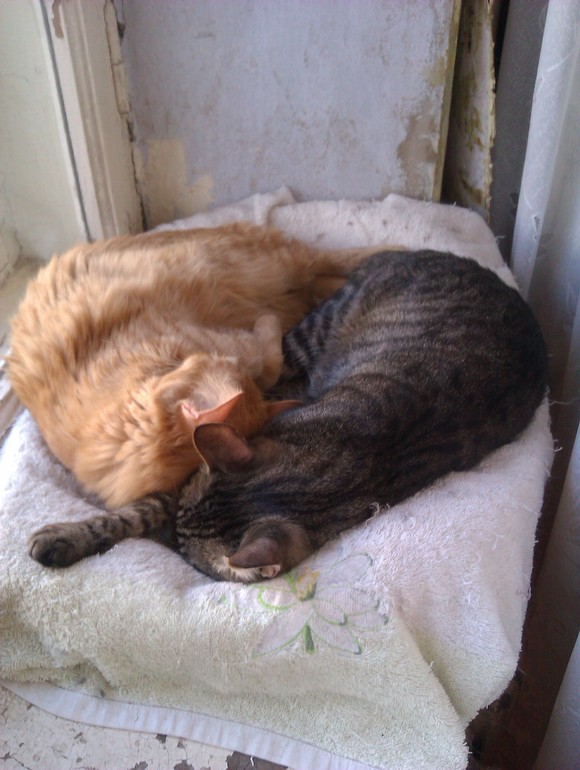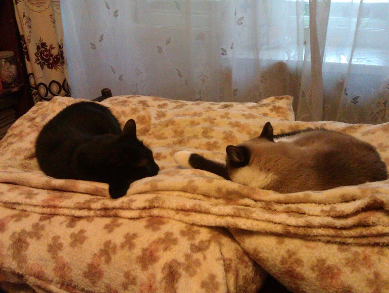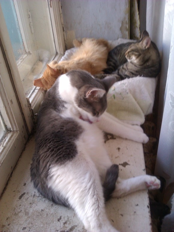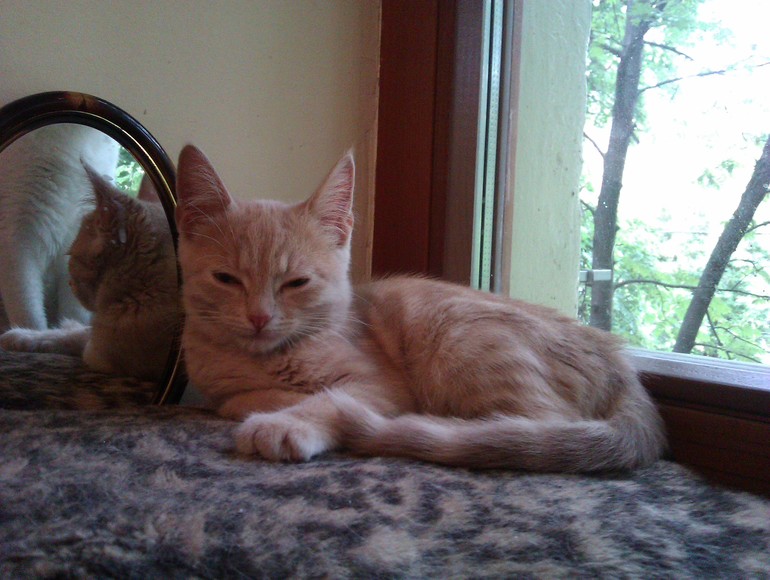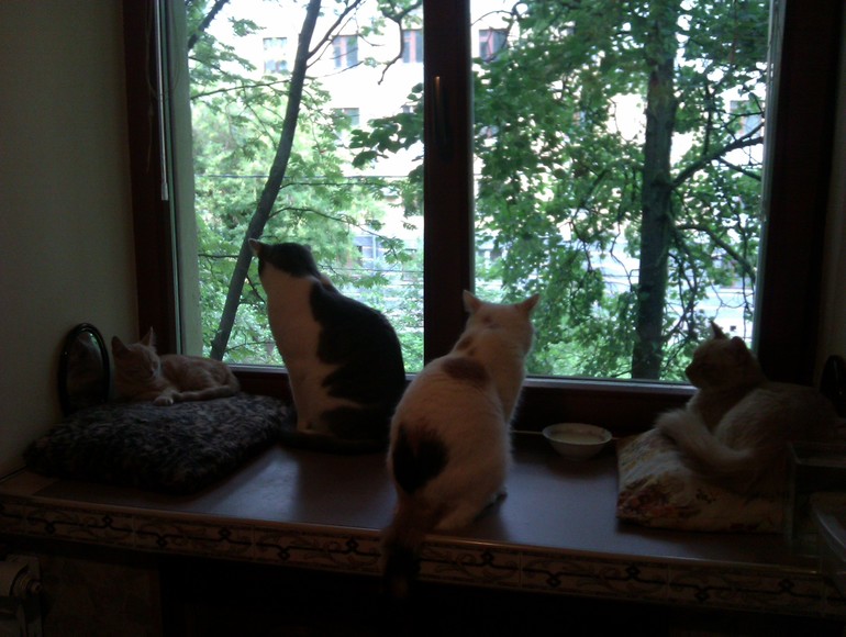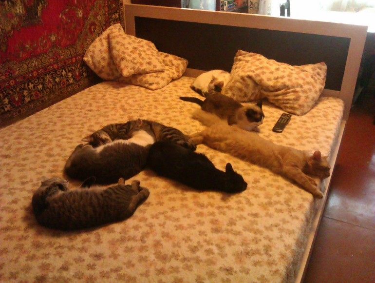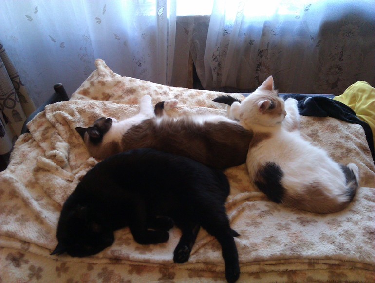 Если считать с новоприобретённым Персиком, то у нас их теперь девять. И ещё две собаки.Зоопарк, в общем.