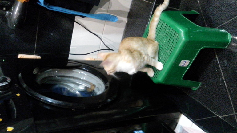 А помните я рассказывала вот эту историю . Ну так вот это рыжая штука переехала к нам разумеется. Назвали его разумеется Рыжий ) ну а как еще то. И вот тут я увидела как ведут себя настоящие котята )))) В смысле здоровые котята. Это пипец. Перпетуммобиле это. Он играет со всем, что ему попадется в лапы: шарики, пакеты, трубочки. фантики. Скачет в пол моего роста. Гонят Бомжару. А Бомжара учит его драться. Они подружились. Реально. И это все было на моих глазах. Когда Рыжий только появился Бомж на него шипел и кидался, тот прятался и убегал. Потом они стали драться. Жестко с кусанием друга друга. А потом стали играть ) И спать вместе . И вылизывать друг другу уши. Рыжий растет, стал длинный, а хвост стал с него размером. Перед тем как попить, он копает лапой тарелку с водой, я такого никогда в жизни не видела у кошек.