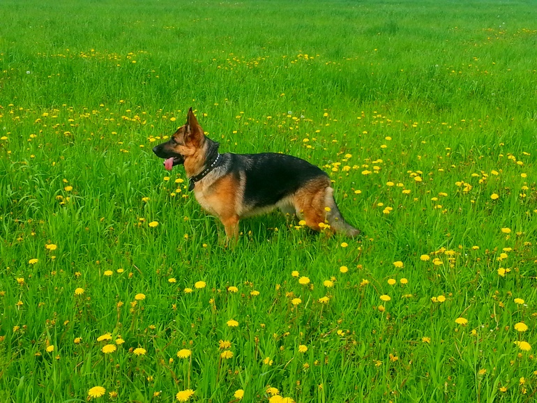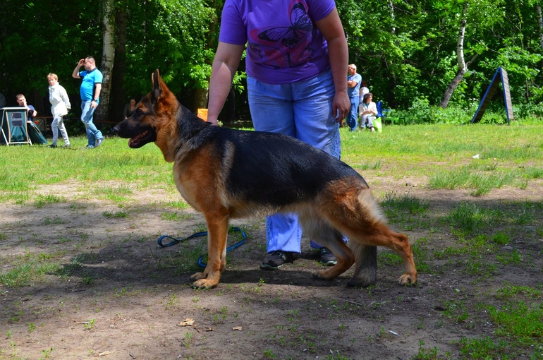 Наши любимцы!Уже выросла девчонка, 1,5 года уже. Умница она у нас, все понимает. Злючка стала, других собак не любит совсем, только с другом своим носится по полю на гулянках. Сурьезная дама растет . Хвост ужасный, куда я туда и она. Несколько раз уже и на выставки ходили. Люблю ее безумно.
