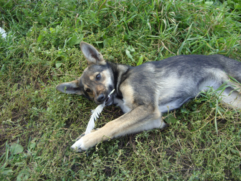 Уже неделю у меня Люська, кошки смирились, цепной охранник пытается дружить. Люська маленькая еще, коренные зубы еще полностью не выросли. В режим питания входит с трудом, потому что наголодалась и поэтому есть хочет постоянно. Ходит со мной на огород, лает на чужих и за пределами двора ведет себя выбражулисто, прямо заметно, как она с гордостью голову поднимает, как бы говоря всем, что она не ничейная, она хозяйская.