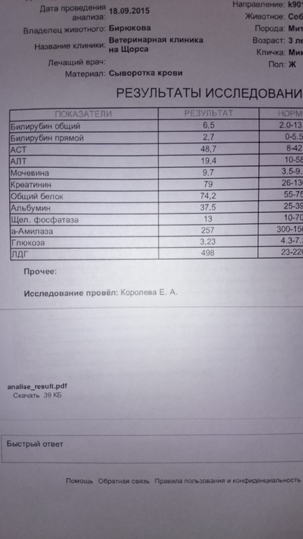 А Бак. посев мочи с чувствительностью к антибиотику нет возможности сдать? Чтобы уж точно давать тот антибиотик, который действует. Странно, что Вашей собаке его не назначили. Людям монурал хорошо помогает, но его рекомендовано не однократно давать (но Вашему врачу, конечно, виднее).