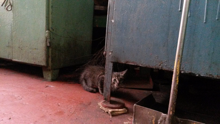 Малютке нужна помощ! Живет на заводе, ему около полутора месяцев. подкармливаем как можем, но ему нужен дом. К себе взять не могу (уже двоих забрала)