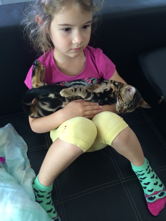 класс!!! у меня дочка тоже играет с котенком много, часто к лицу прижимает, но та пока мягко, но настойчиво старается выбраться )))