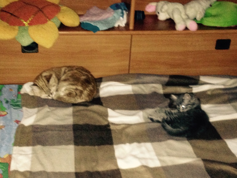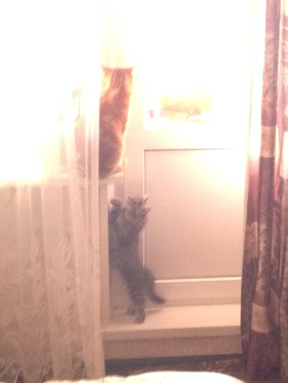 Помогите советомДевушки, а здесь есть такие у кого кошки привыкали друг к другу больше месяца и в итоге прижились ? Я уже всех замучала, наверное , своими кошками. Но нервы на пределе, переживаю. Очень хочется чтобы кошечки полюбили друг друга. Чтобы спали рядышком и вылизывали друг друга. Пока ничего криминального между ними я не вижу, кошка котёнка ближе чем на 30 см не подпускает к себе, чаще прячется. Котёнок с ней поиграть хочет, он за ней бегает, она убегает и прячется, потом лапкой его бьет ( легонько, без когтей) и по настроению, либо шипит, если спать хочет, либо бежит за ним. Сегодня дважды видела как она за нимбегала сама. Спят они на расстоянии метра друг от друга... Кошка не подпускает к себе малыша, шипит. Хоть ширит она на котёнка редко, не кусает его, на дыбы не встаёт, просто наблюдает за ним, но дистанция не уменьшается... Стала пытаться обоих гладить , приближая их друг к другу по максимуму. Хватает на минуту, как только котёнок пошевелится у меня в руках, она вздрагивает и убегает... Котёнок на неё тоже не шипит, наоборот скорее игриво к ней относится, дружелюбно... В лоток они обе ходят в один и тот же, не получилось у меня приучить их к разным , хотя котёнок нашла угол и раз в день в этот угол писает, а тут заметила и кошка поверх этого письнула, только я вымыла там все спец средством из зоомагазина. Возможно пометила. Кушают они тоже из разных тарелок, но одновременно и рядом. Кошка напряжена, когда котёнок рядом, поэтому быстро съедает половину корма и убегает быстрее пули... А котёнок идёт к её тарелке тоже. Пьют из одной миски по очереди, ко второй вообще не хотят подходить. Ночью приходится разделять их, чтобы котёнок к ней не лез.