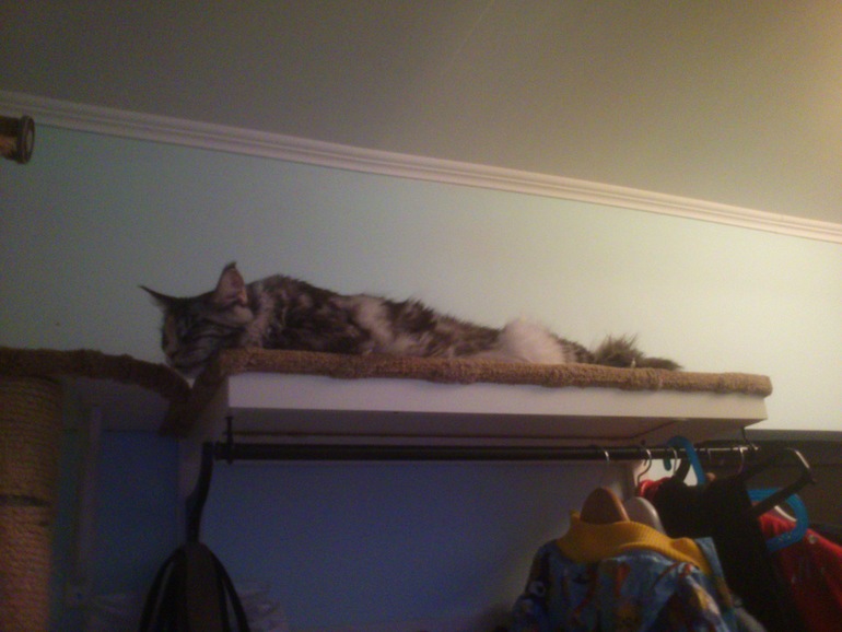 Ленусь, она у нас не тяжелая! так как не стерилизованная! но очень длинная! кг 6 всего! но кошки так и весят 6-8. это коты 8-10!Их нельзя раскармливать иначе проблемы с сердцем и суставами сразу начинаются! Вот, смотри-она длинная...