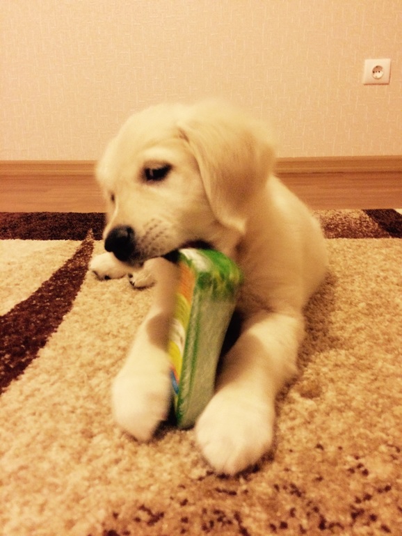 Много читала тут, что породистая собака это большие расходы в дальнейшем. Но я вот что поняла. Любая собака это большие расходы. За месяц ее пребывания в нашем доме сумма ее содержания уже приблизилась к сумме стоимости самой собаки. А именно: пеленки, медицина, гигиена, миски, поводок, ошейник, питание. Я не считаю ущерб нанесенный имуществу))) Могу только сказать, что обои придется переклеивать, предварительно заштукатурив углы прогрызенные до бетона, а так же купить новые шторы во все комнаты и ковры. Еще пару одеял описала, а в машинку стиральную они не влезают. Теперь Рада на них спит) Ну и по мелочи всякого сгрызла, что смогла добыть.