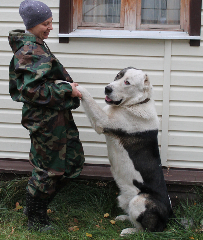 Ух как же я обожаю этих медвежат!!! Красавец!!! Сама родителям подарила алабая))) Только у нас девочка, но морда у нее похожа с вашим - полностью белая, с черным пятном, прикрывающим глаз))) пиратка короче))))