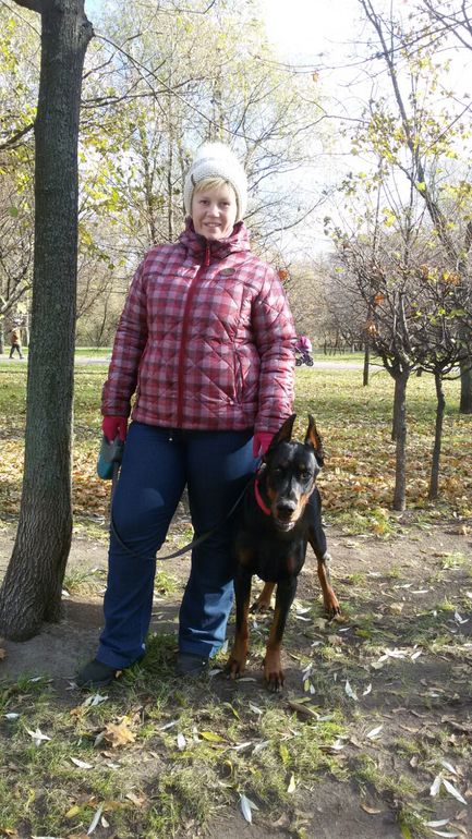 Сабака у Вас очень красивая, всегда любуюсь доберманами! Но такая собака должна гулять в наморднике. У самой две собаки, гуляют только в намордниках (хотя агрессии ноль). Я бы тоже ворчала, видя такую собаку без намордника :)