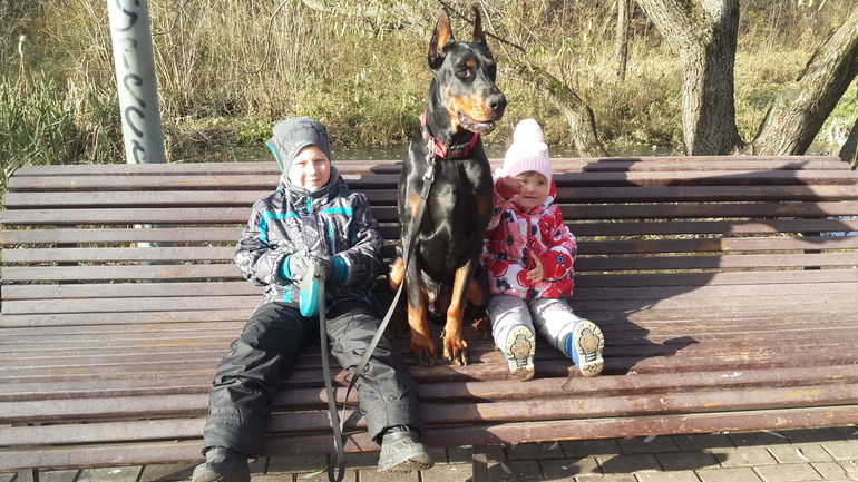В детстве оч любила доберманов, даже не знаю почему... очень удивил коммент, что вы не удержите добермана, это же не алабай))