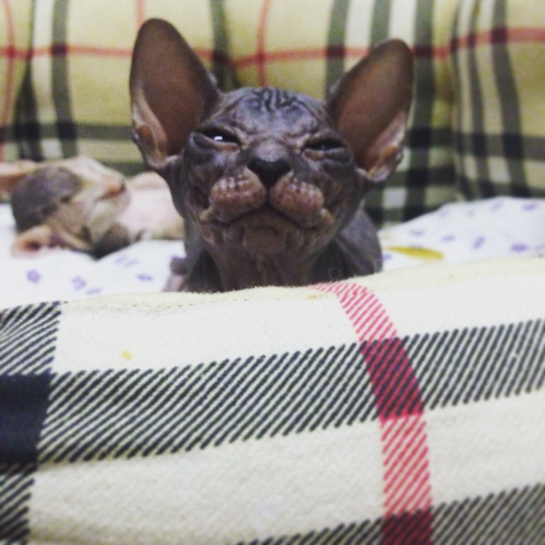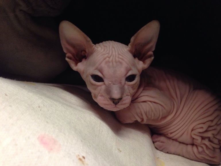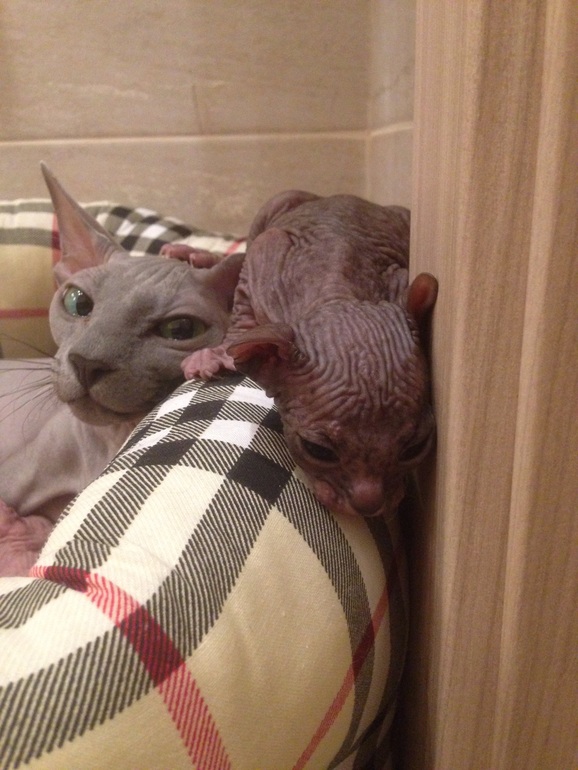 Изюмка -это копия Йоды , просто клон!!! Тот же характер ленивого и мега ласкового кота 🙈 тот же вес при рождении, окрас, такая же лысая попа , просто чудо природы ❤️
