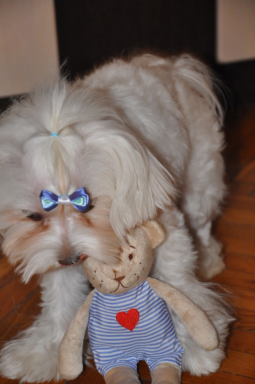 Тяжело было после смерти моего пса..., но моя матрёшка (Мотька) радует меня не меньше. Люблю моё золото, лапочка моя любвиобильная. Счастья тебе моя собака-лизака, мой позитив, моя маленькая трусишка. ЗДОРОВЬЯ тебе мой маленький белый комок счастья!!! Мы тебя ОЧЕНЬ любим!
