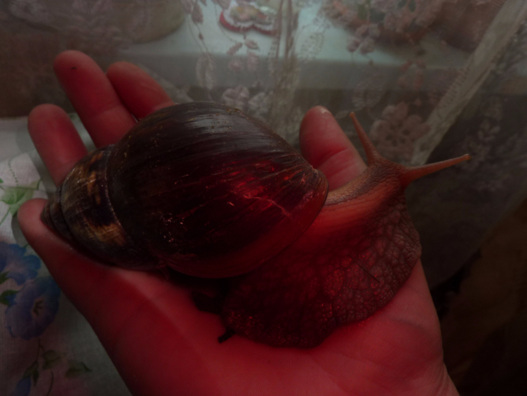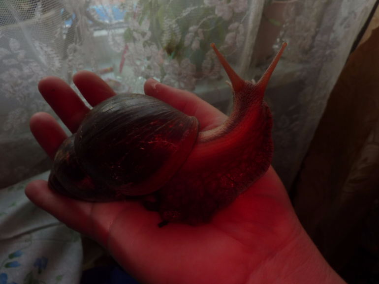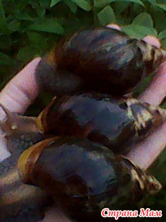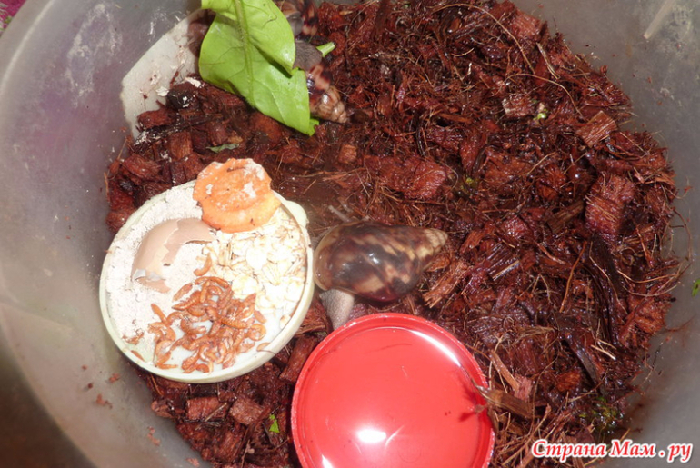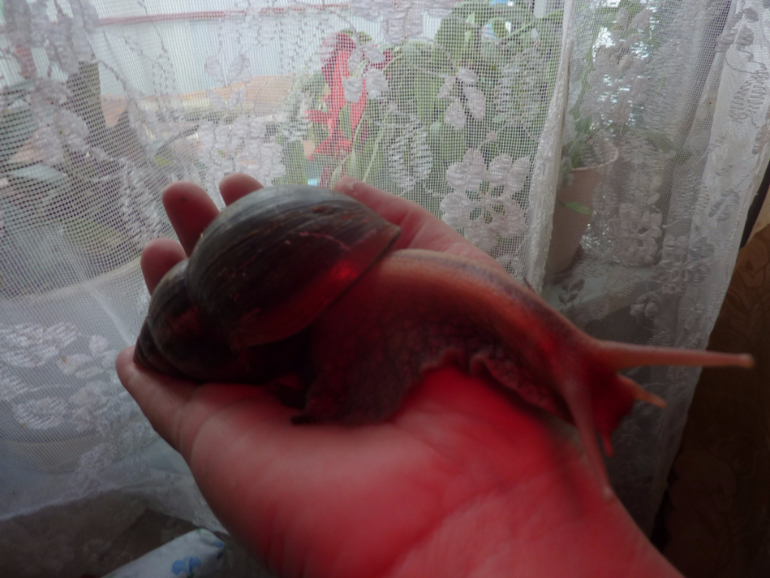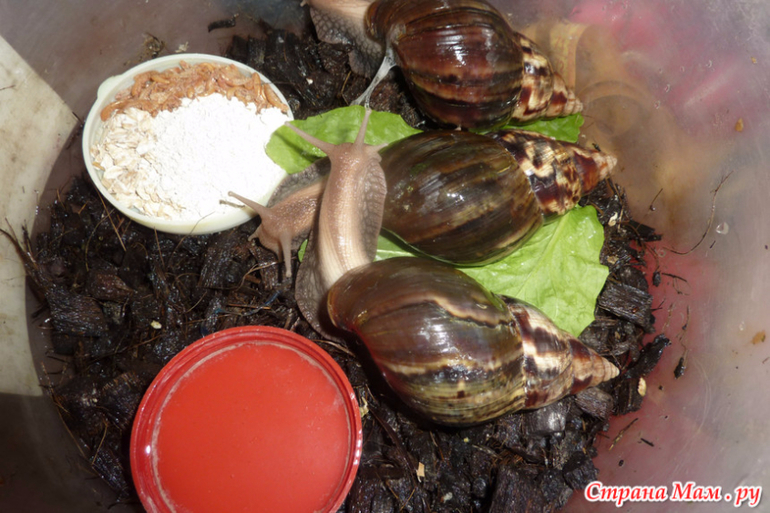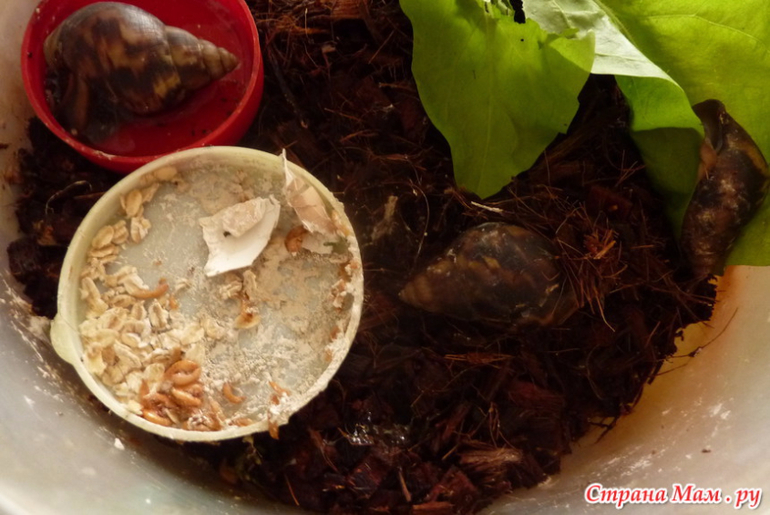 Улитки, черепахи, рептилииУ средней дочки в июне было день рождения,ну и моя сестрица подарила племяшечке трех улиточек.Привезли их в баночке поллитровой уже к вечеру,информации по уходу никакой, от слова совсем.У хозяйки они сидели в пластиковом контейнере с крышкой для рассады который просто на огородной земле.Пришлось срочно придумывать куда зверье помещать,не сидеть же им в банке.Благо лето,надрали травы в огороде,настелили в пластиковой кастрюле пятилитровой для микры и посадили их туда.Визгу было,голову ломать не пришлось чем деток занять,весь вечер они торчали вокруг стола с улитками и мы их не видели ,и не слышали.Начала лопатить инет на предмет ухода,раз уж завели нужно чтоб животинке хорошо было.Утром побежала в зоомагазин,купила кокосовый субстрат,размочила,промыла до чистой воды,все разложила в кастрюлю и накупав улек усадила,поставила в крышечках воды и еды(овсяные хлопья,гаммарус и кормовой мел,все по столовой ложке),ну и листиков салата,у хозяйки подорожник ели за милую душу,у нас наотрез отказались попробовав салат.Вот такими они у нас появились