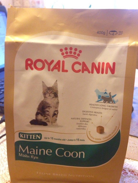 спросите у заводчиков, но котов, тем более мейн-куна нужно кормить натуралкой или довольно дорогим кормом