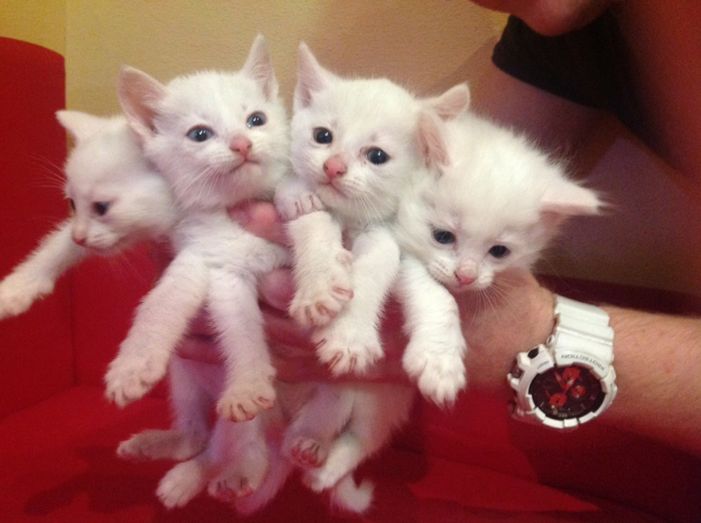 Они ждут своего хозяина (бесплатно)Одна девочка Вата( так я ее зову) самая толст ушка и умничка! И три мальчика, Зефир,Кефир, и Беляш! Один все-таки не слышит( или на одно ухо глухой) он у нас повязан ленточкой! Все едят сами, им полтора месяца.в лоток кто-то ходит кто-то нет. Мне их сложно различать. В доме есть собака они отлично с ней ладят! Собак не боятся. У котят еще не понятно кто бует с разными. Мама обычная! Ждем родителей)))