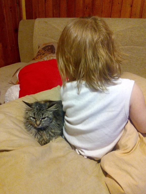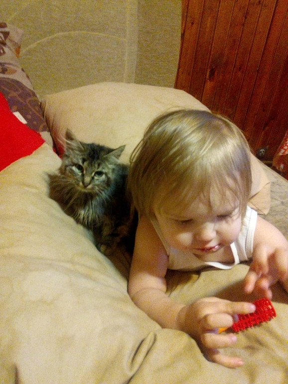 с собаками, кошками отлично ладит. И очень хорошо себя с ребенком)