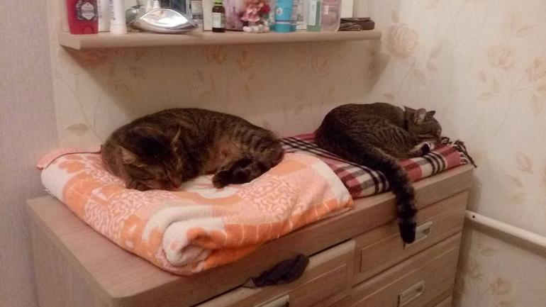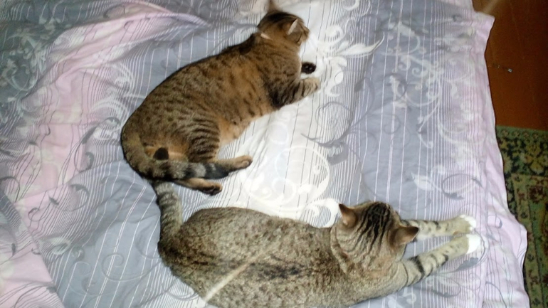 Наши любимцы!Всю свою жизнь, сколько себя помню я мечтала о котике. Маленьком пушистом озорнике, который будет качаться по шторам и грызть обои. Но родители в этом плане были непреклонны. Вот, закончила я школу,уехала от родителей, а котика все никак не завожу- ужасно боялась ответственности за это милое создание. Познакомилась с мужем, стали вместе жить. И как сейчас помню, 25 декабря 2013 года он приходит домой и вытаскивает маленькое дико орущие воняющие помойкой существо ))) Сказал : "Я принес тебе его показать и только покормить". Ага, как же. Уже два года только "кормит". Вот так в мою жизнь ворвался Том. Из маленького милого комка, который умещался на ладошке он вымахал в кабана весом 6 кг.На этом я не остановилась, с лета 2015 года я стала канючить, что одного котика мало и я хочу другого. Муж был непреклонен, твердо сказал нет и точка. Однако судьба распорядилась по-другому, и Джери сам нашел нас. Он был не маленьким котенком, уже достаточно взрослым котом, сам пришел и сел под нашу дверь. Ну как тут ему отказать? Тому новый друг сразу же понравился, они даже и не думали драться за территорию. Но что у нас началось в доме, это не передать словами: ураган, каждый день один сплошной ураган. Сносится все на своем пути, что видят : ковры, игрушки, шторы раз в неделю муж стабильно вешает. Однако котики наши очень чистоплотные: все свои дела делают на ура в горшке, мебель не дерут, уважают когтечоку, к обоям равнодушны. А к последствиям их игр мы уже привыкли. Любят ТОЛЬКО мужа, к нему они идут ластиться, играться,спать. Меня, так сказать, терпят. Дают гладится, но не с восторгом. А от чужих просто убегают или с недовольным мявом вырываются из рук.В общем, если вы хотите котика, но все никак не решаетесь, то заводите даже не задумываясь. Они очень умные животные, каждая индивидуальная личность, с характером и повадками. Сейчас ждем ребеночка и я уверена, что проблем у нас в совместном сожительстве не должно возникнуть. Единственный страх, что у ребенка будет аллергия на их шерсть. Но я надеюсь что этого не произойдет и на их понимание: нельзя лезть к маленькому человечку, от которого вкусно пахнет молочком