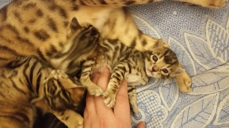 Глазки полностью открыты уже около недели. Ходить начали 4 дня назад, до этого ползали только. Сейчас изучают коробку и начинают играть между собой, лижут друг-друга так умилительно.. Лапками трогают))) Мне не нужен телевизор, ребенок забыл про планшет и занятия.... Вся семья сидит в вольере и няшкается с малышами. Прилив нежности и любви в нашей семье)))) Судя по всему у нас 3 мальчика и 1 девочка!