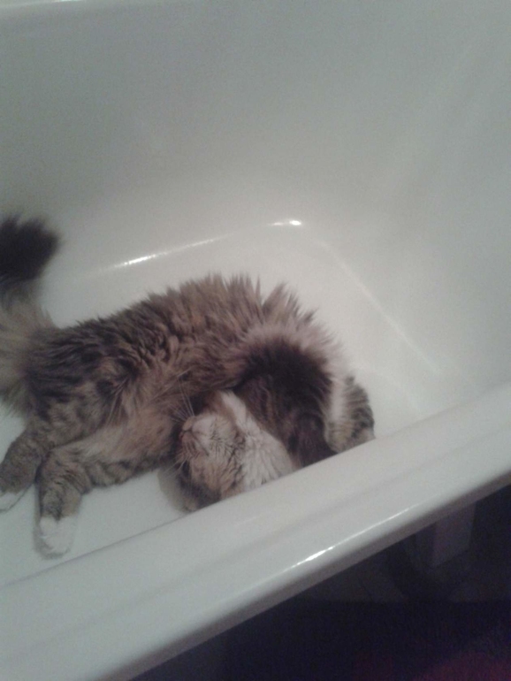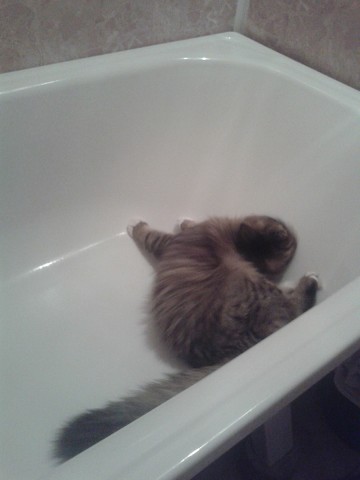 По фото видно, что и ему у вас хорошо))) очень понравилось, как в ванной катается, додумался же до такого)))