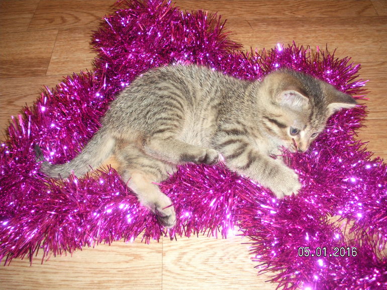 Кошки. Болезни, прививки, советы по уходуДавно мне хотелось котеночка! А тут друзья пришли на новогодние праздники сидели в одноклассниках фото смотрели, увидела котят в приюте, уговорила мужа и поехала за своим чадом. Так что можно сказать это наш подарок к новому году! Дети были очень довольны, назвали Муся, дерутся чья очередь гладить и на коленочки сажать)). С мужем сделали домик нашей кошечке. Стала фото просматривать с приюта и что то мне кажется мама у нашей Муськи британка или я ошибаюсь? Девочки взгляните одним глазком есть ли в нашей кошечке порода, если да то какой окрас?