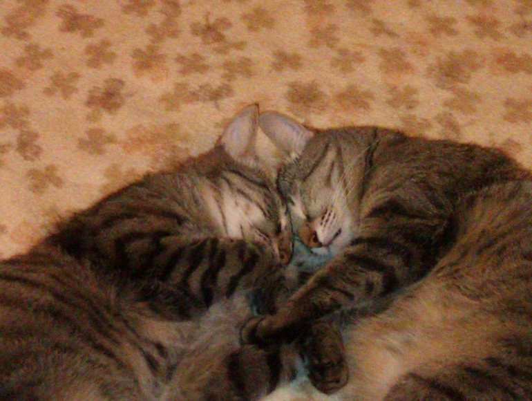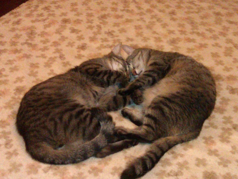 P.S. Мулечка справа. Это лёжа она кажется толстенькой и упитанной. На самом деле она у нас самая миниатюрная из всего котостада. Конституция у неё такая, видимо.