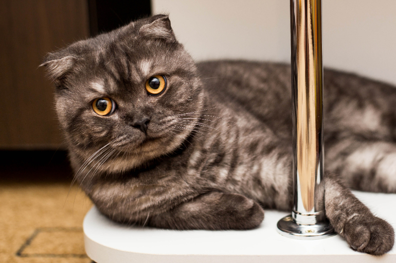 Похож на мраморный кексик))) и выражение морды прям философское, будто бы о жизни он знае все :-)