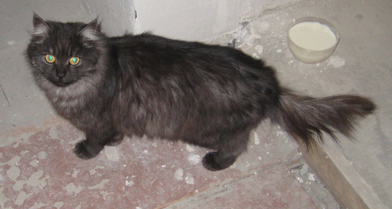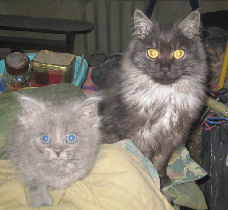 Маркиз приблудился 9 марта прошлого года. Подобрали его моя мама и младший сын на прогулке. Брат отвёз его в мой дом, где мы на тот момент ещё не жили. Каждый вечер, после работы, я ездила туда его кормить. И вот в один из вечеров, ближе к концу марта, Судьба послала нам прибавление. Или меня этому прибавлению. =)) На вид недели три, если не меньше, ещё ползунок. Пищал в темноте, возле дороги. Надвигался мороз. -8... Я поспрашивала по соседним домам - у кого красота потерялась?. Мне смеялись в ответ - в частный сектор всегда подбрасывают... Берите, ничья.... Ну и вот.... Стали они жить вдвоём. Мелкий есть ещё не умел.=(( И началось... Пипетки, кормёжки для маленьких.... Лечение гноящихся глазок. Вы не поверите! Но в месяц (!!!) он сам пошёл в лоток. Я так сейчас пишу в мужском роде... Уже привыкла. Но первые два месяца это была Дымка. =)) Яйки проявились позже.=)) Вот он, подросший. Свежее фото нет, но сейчас вообще красавец.