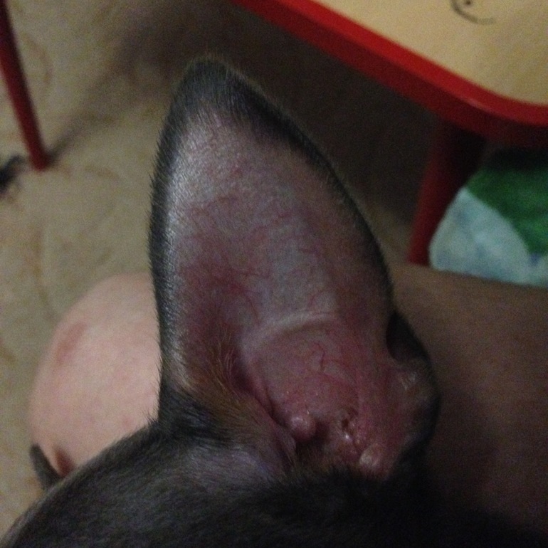 А у собаки всегда такие уши? У нас тоже тойчик. Он когда спит, у него ушки краснеют, а когда бодрствует, нормальные.
