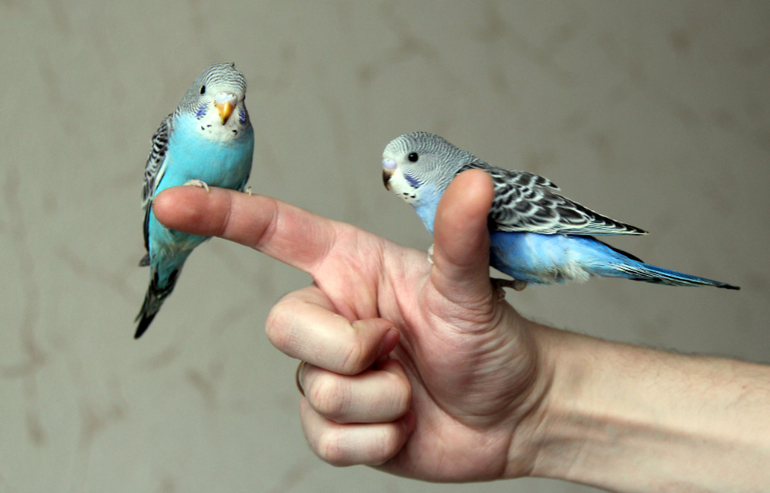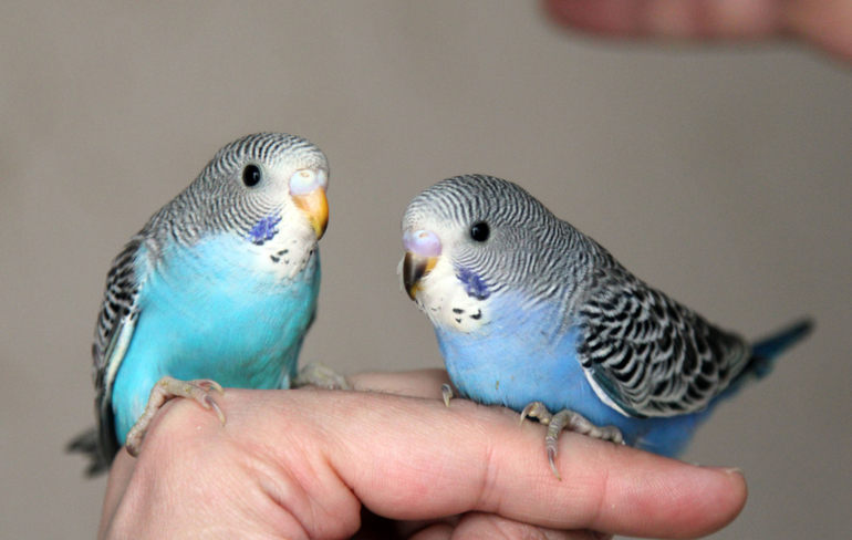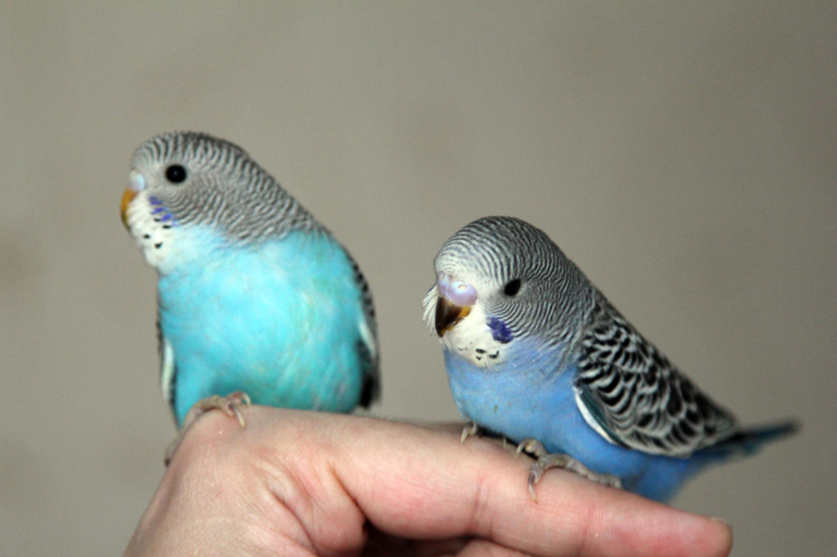 Немного их пофоткали. Бирюзовая со светлым клювом-девочка, синий с черным клювом- мальчишка