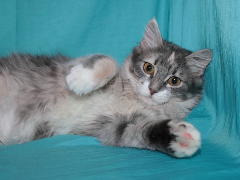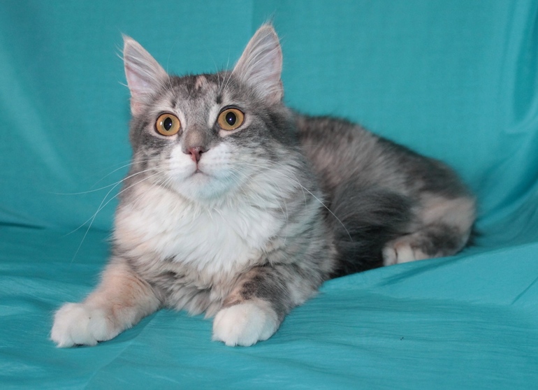 У Кактуса было сложное детство: ее мама и две сестренки умерли от инфекции и истощения, а ее мы увидели и не смогли пройти мимо. Теперь это красивая кошка, которая знает на 5 с плюсом лоток и когтеточку. Очень любит лежать на коленях и петь песенки. Любит бегать за игрушкой, которую она приносит обратно и ждет, пока кинут. Кушает сухой корм и консервы, но иногда ей перепадает мясо или курица, но очень редко.
