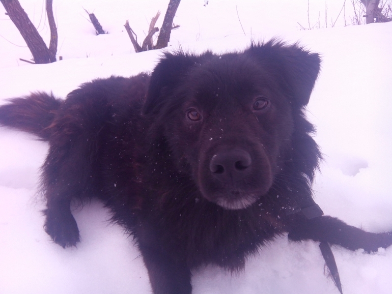 Счастливые историиАтом молодой, вороной красавец пес наконец обрел свою семью и дом)