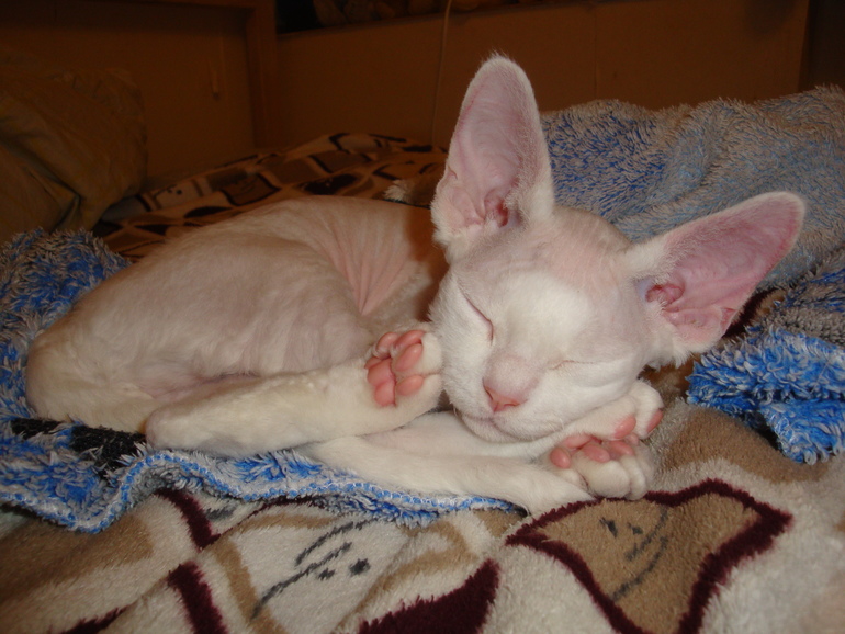 Какой-то космический пришелец, а не котяра...А эти розовые подушечки на лапках, такие беззащитные...