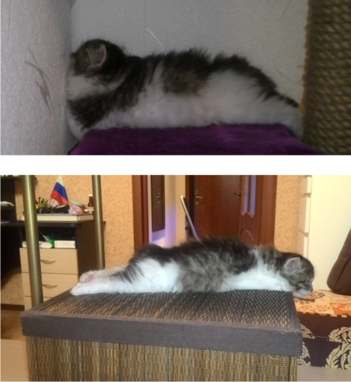 За две недели все пушистики уехали к новым любимым хозяевам. Себе оставили самую, как мы думали изначально, спокойную девочку. Изначально муж был против, но не смог устоять перед белым пузом на фотке выше.
