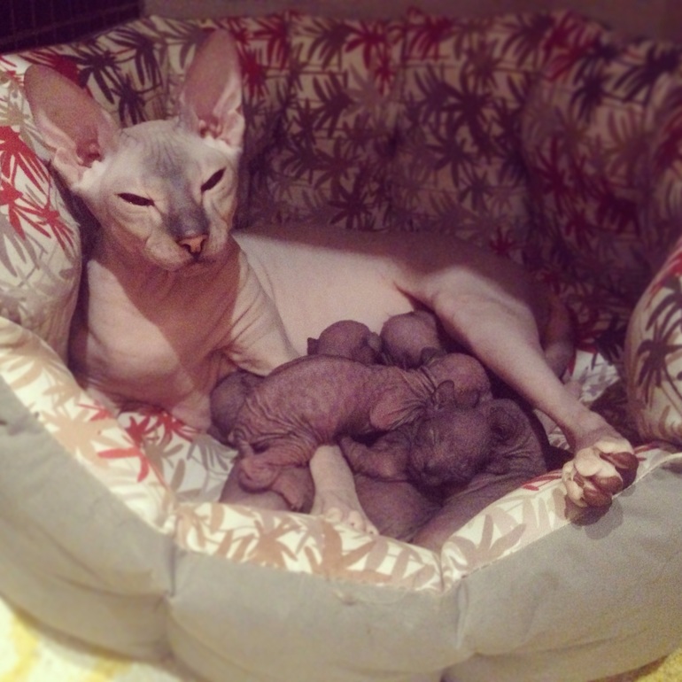Мы не пускаем ее к котятам надолго и без присмотра н оставляем , они до сих пор ее начинают сосать , не знаю почему , а главное Мотя ,как бешеная с ними насасывает , это просто ужас 🙈😆😁😂 сама кормит и титьку сосет у своей мамки😳 смех и грех🙈 а так Лю котят признала , просится к ним и вылизывает их, мне кажется она думает , что это ее малыши )