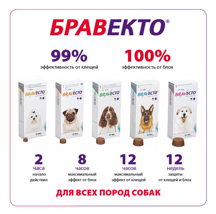 Помогите советомДрузья, очень жду отзывов, не проходите мимо!!! Кто пользовался таблетками Бравекта от клещей и блох???? Каковы впечатления и результаты?? Наш Вет. чуть ли ни как панацею ее нам рекомендовал ( вет. проверенный, просто так на деньги разводить не будет). Так вот отзывы в инете неоднозначные. Склоняюсь чтобы купить. На наш вес таблетка стоит в районе 1500руб. Денег не жалко, был бы толк. Нас уже один клещ тяпнул, чуть от разрыва сердца не померла, от волнения пока за Тором наблюдала первые дни. Вроде пронесло... После прогулок осмотр всей нашей могучей волосатости чуть ли не по часу провожу, вычесываю. Каждый раз нахожу 1-2 этих противных паразитов, они не успевают добраться до кожных покровов через дебри шерсти. Но переживаю каждый раз... а это только начало сезона. Пожалуйста поделитесь как Вы с клещами боретесь и что помогает лучше???? ВСЕМ СПАСИБО!!!! СЕГОДНЯ КУПИЛА КАПЛИ "ФИПРИСТО" (в прошлом году они нам неплохо помогали) и СПРЕЙ "Беафар". Таблетки решила пока отставить!!