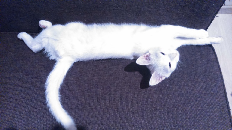 Из маленького комочка за четыре месяца Сеня превратился в прекрасного кота - лоток нашел сразу, характер -чудный - добрый, игривый, ласковый. Вырос очень быстро и перегнал уже старшего нашего кота. У Степы завораживающие глаза - один голубой, другой зеленый, густая шерсть, быстро растущие когти, прекрасный метаболизм и смешные огромные подушечки лапа.