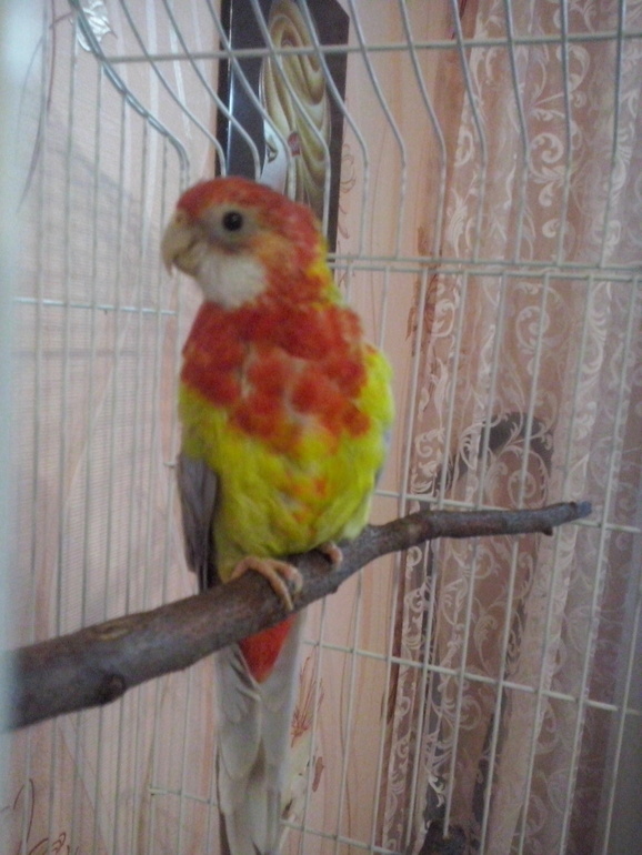 Теперь у нас розелла.Мы её любим,особенно муж(он выбирал)А как она интересно чирикает,всегда по разному