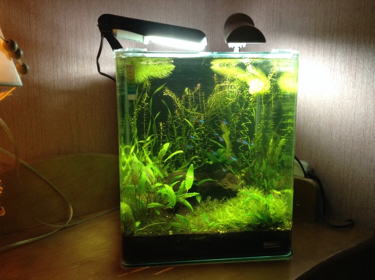 6. Население. Нужно сразу понять важную вещь - в таком маленьком объеме могут жить только очень маленькие рыбки в очень маленьком количестве. Иначе, продукты их жизнедеятельности их же и отравят. Есть специальные рыбки - нано, не советую их заводить - они прихотливы и дороги. Гуппи тоже не стоит брать. Живородящая рыбка очень быстро размножается, быстрое перенаселение банки, полетит баланс и будет аммиачное отравление живности.